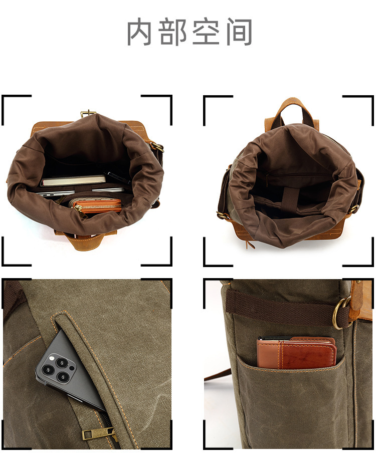 Backpack Crazy Horse Leather Leisure Travel Bag Men's Backpack Oil Wax Handheld Canvas Computer