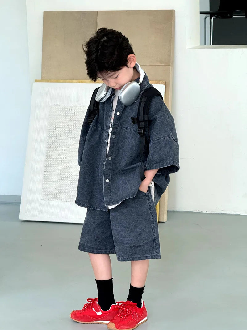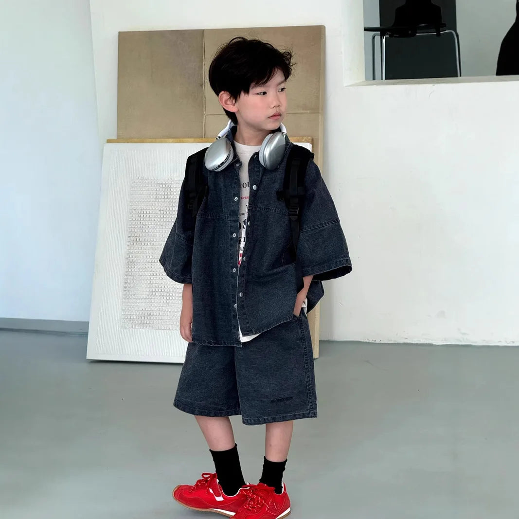 Boys' Summer Shirt Set 2025 New SummerSmall and Medium sized Children Boys' Summer Short sleeved Shirt Top