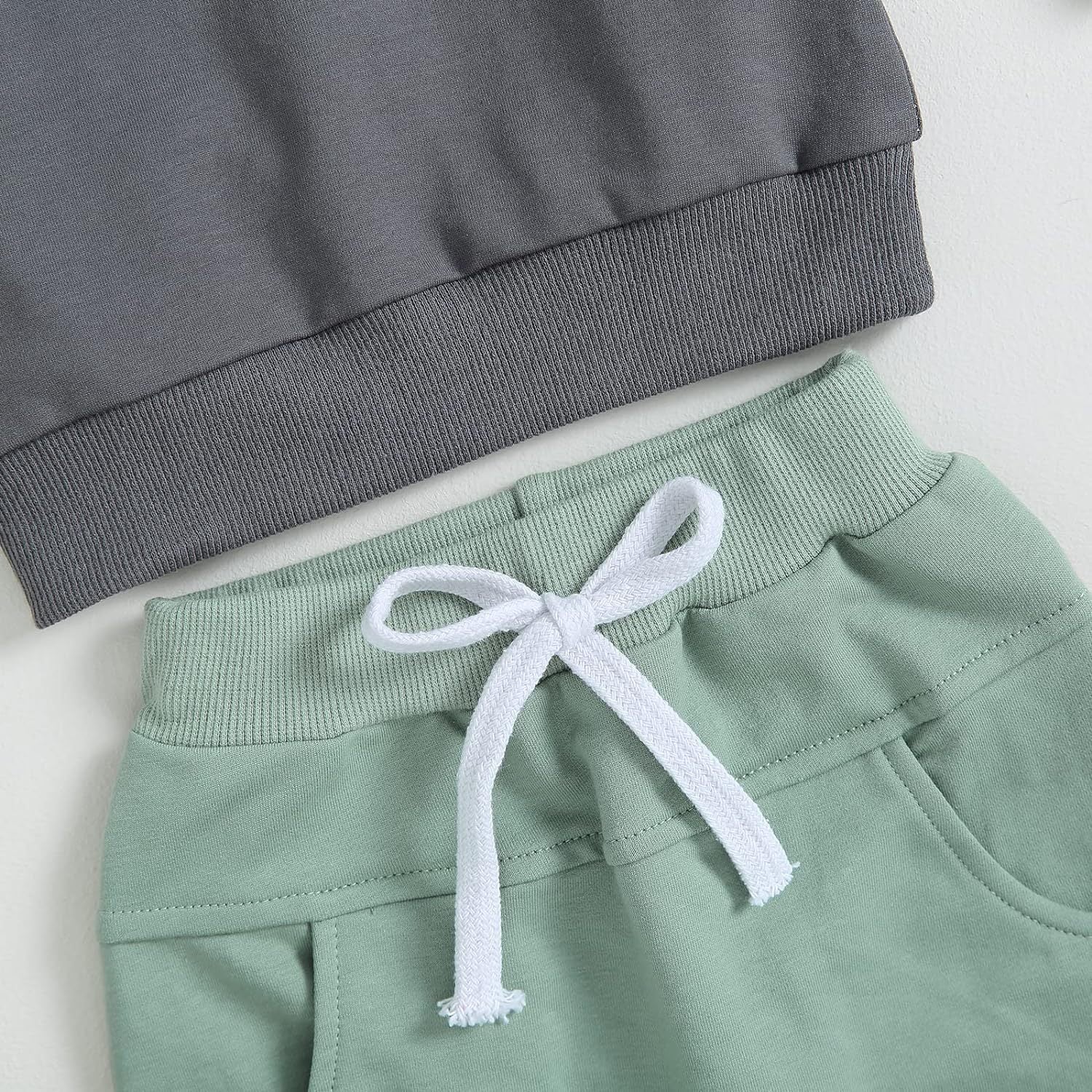 Color Contrast Patchwork Pocket Hooded Sweater Children Fashion Casual Set