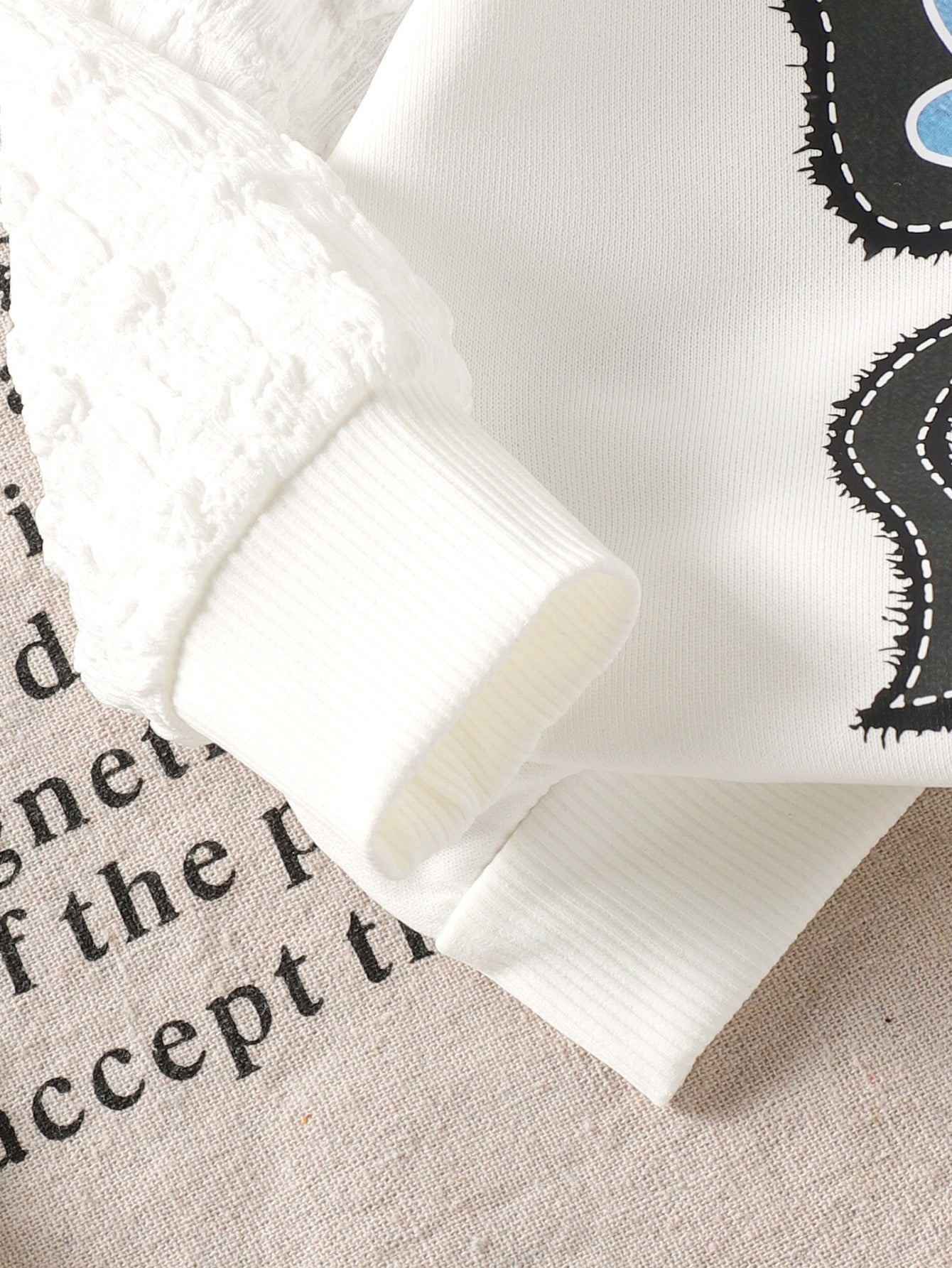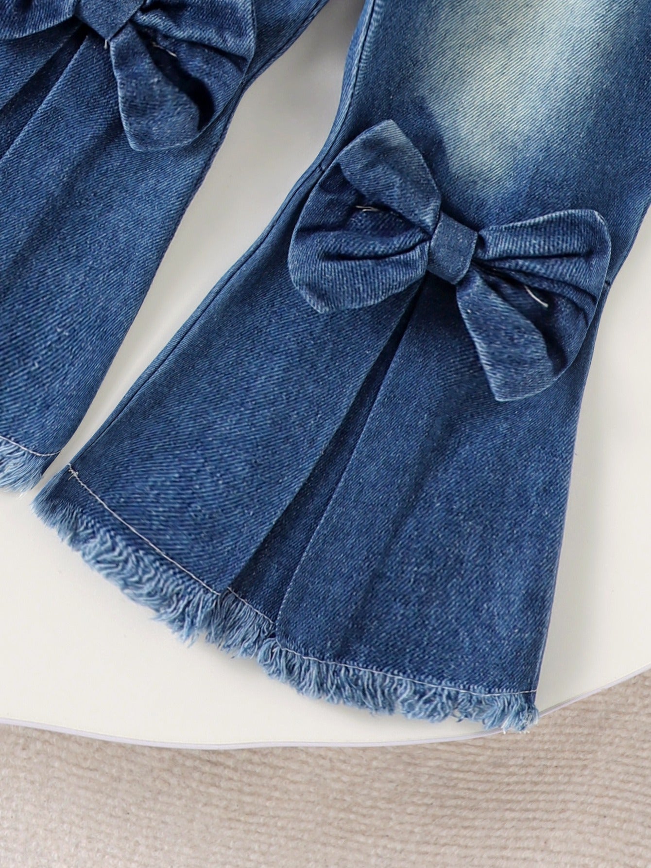 Girl suits with bow prints, long sleeves and flared pants, two-piece set