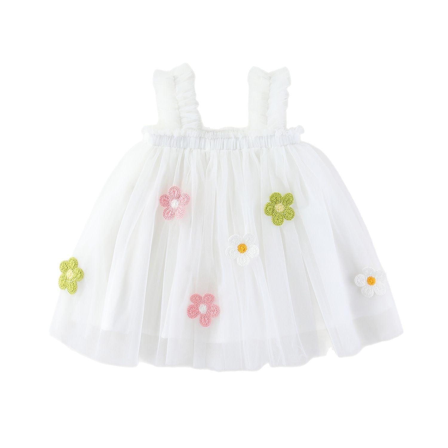 Girls Spaghetti Straps Chest Wrap Flower Embroidery Mesh Dress