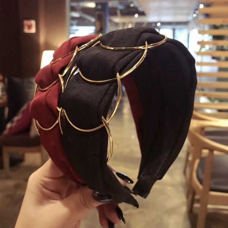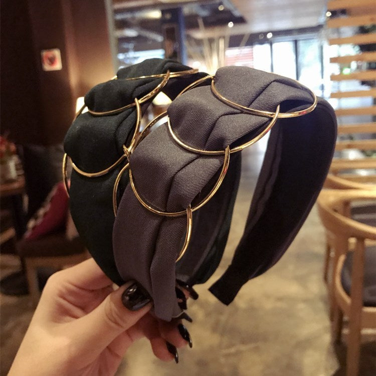 Hair Accessories Headband Women Fashion Golden Ring Cross Stitching Fabric Wide Side